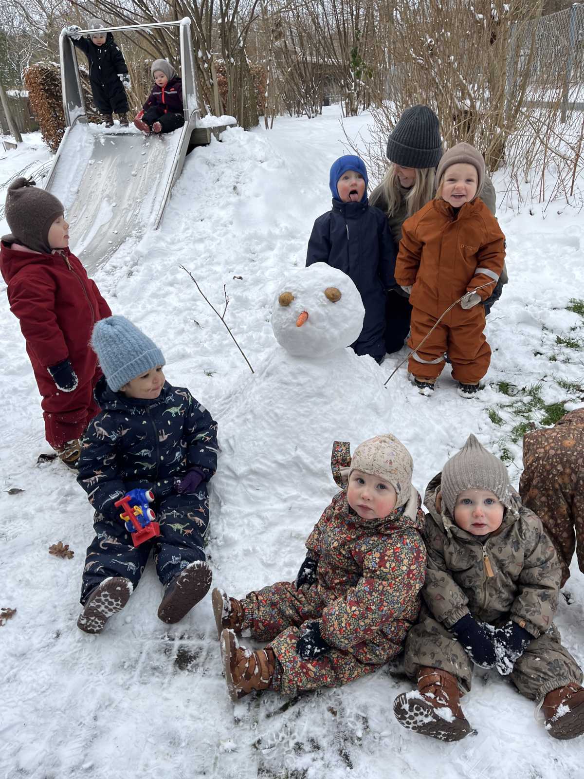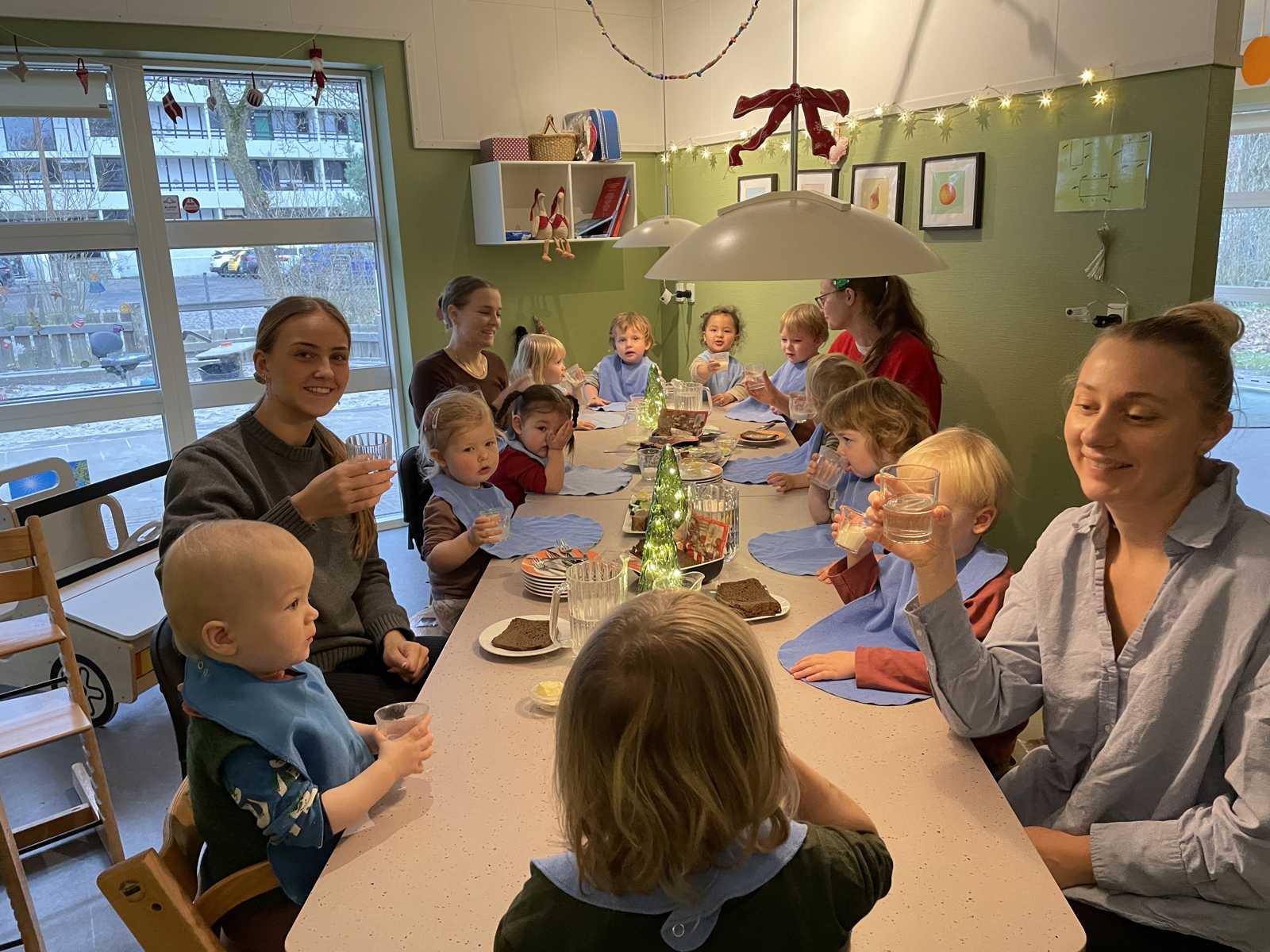 I takt med at børnene vågner af sig selv, sætter vi os til bords og spiser eftermiddagsmad. Der er rolige aktiviteter, indtil vi går på legepladsen.